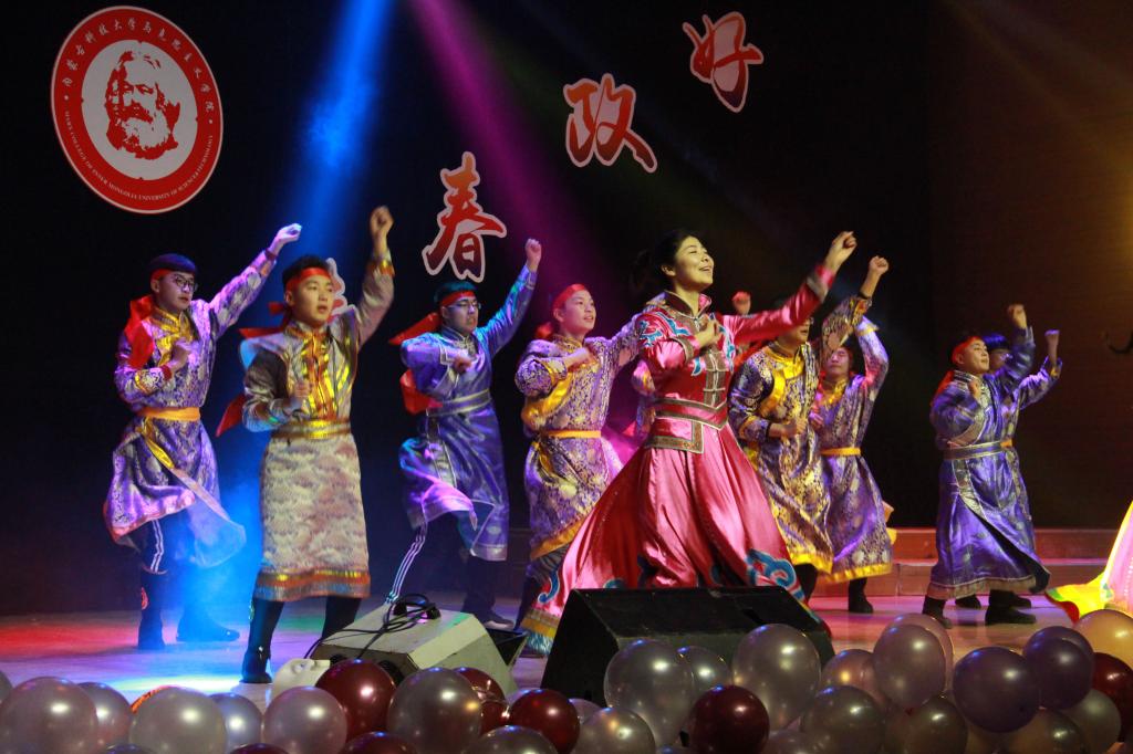 14个节目精彩纷呈,苏尔沁乐队的歌曲《春天来了》让人感受到浓郁的民族特色,精心编排的小品《我想谈恋爱》让人捧腹大笑之余思索颇多,衣袂飘飘的古典舞《牵丝戏》和中国武术《国韵太极》让人体会到我国优秀传统文化的独特魅力。互动环节中的舞狮节目将晚会推向高潮,铿锵有力的合唱《走向复兴》、《歌唱祖国》为晚会划下完美的句号。整场晚会节目纷呈、气氛热烈,博得现场掌声雷动,欢呼声喝彩声不绝如耳。