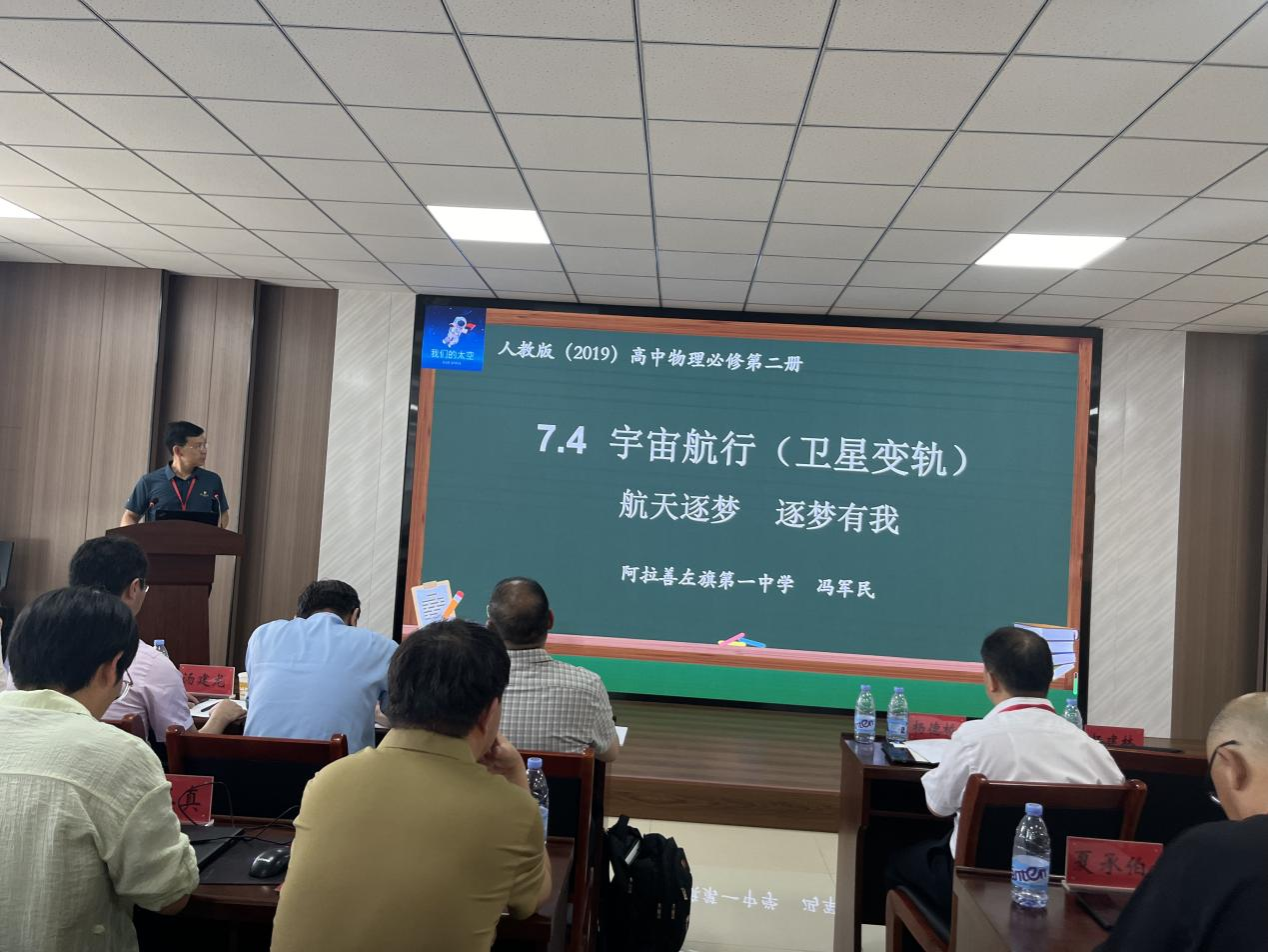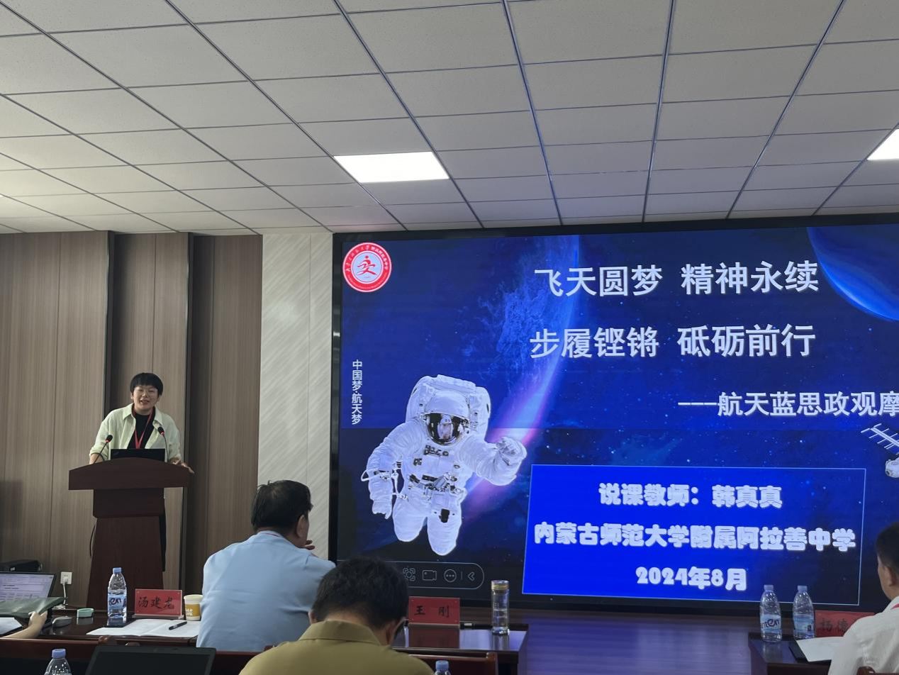 来自内蒙古师范大学附属阿拉善中学思政教师韩真真、阿拉善左旗第一中学物理教师冯军民分别做了以航天蓝为主题的思政金课展示,并接受了现场专家的指导点评。