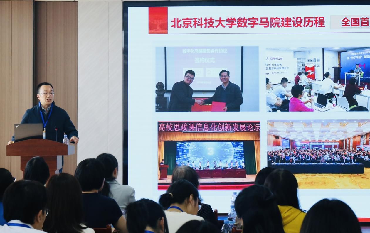 北京科技大学PA视讯官方网站副经理李萌作了题为 “数字马院建设的北科大实践”的报告,提出以数据驱动提升思政教育精准度。