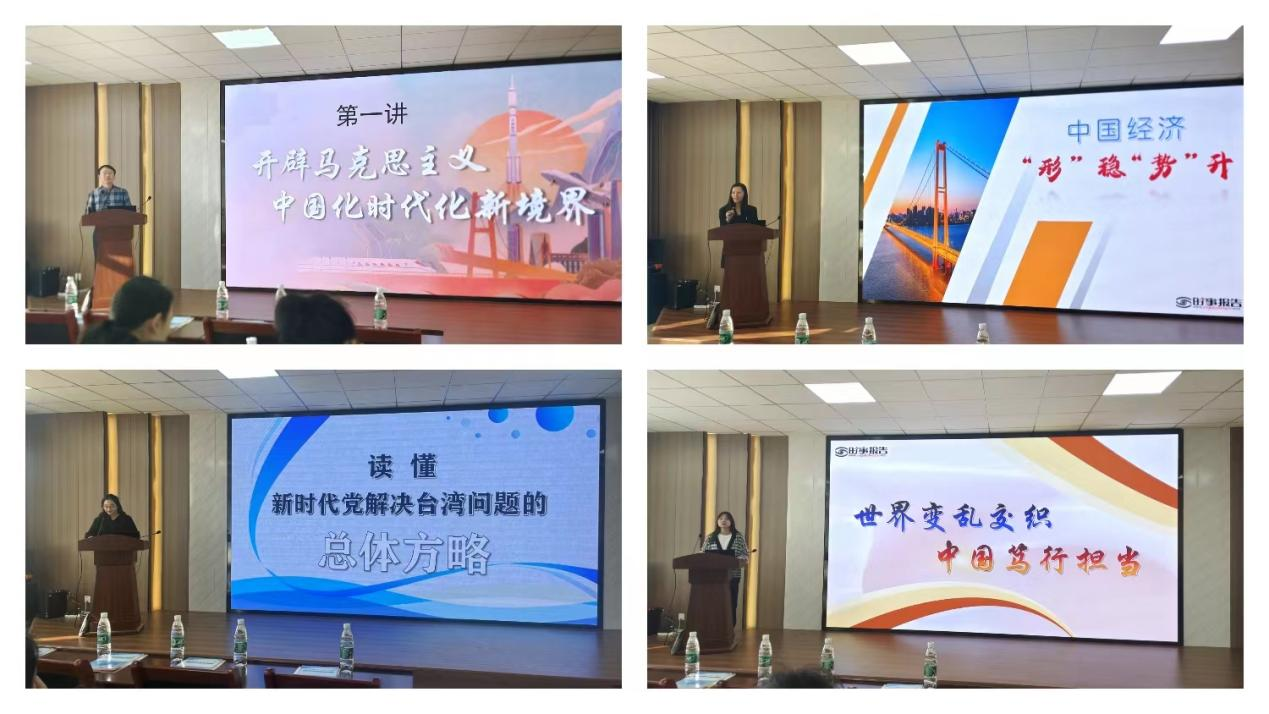 在备课会过程中,杨彦斌、宋东方、郝志芳、张婧四位老师分别就《开辟马克思主题中国化时代化新境界》、《中国经济“形”稳“势”升》、《读懂新时代党解决台湾问题的总体方略》以及《世界变乱交织 中国笃行担当》四个专题进行了教学展示,任课教师围绕教学重难点问题积极开展交流研讨。