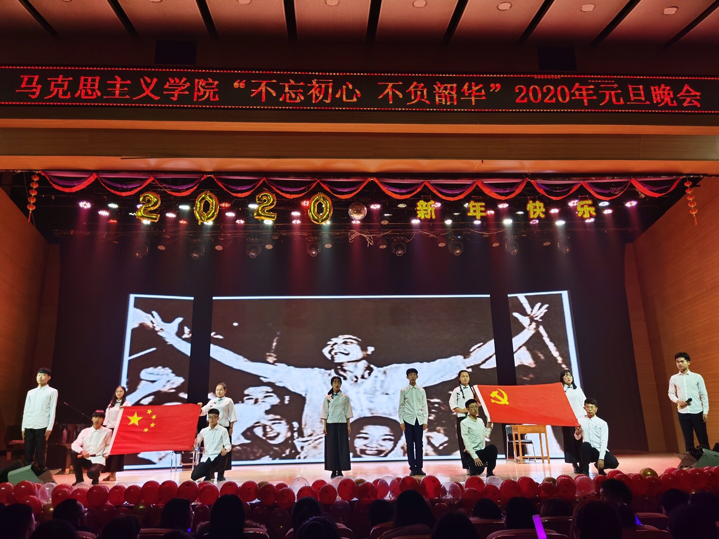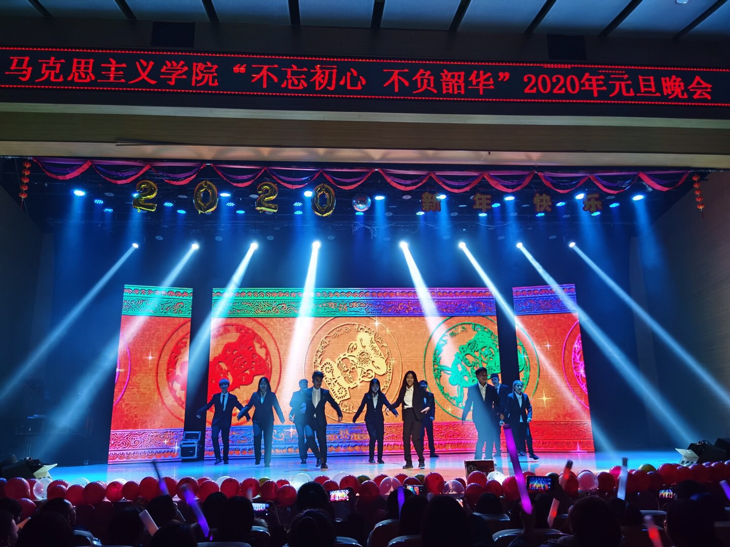 不忘初心跟党走,青春建功新时代;不负韶华勇逐梦,马院学子谱华章!经过前期一个多月的精心准备,12月15日晚七点半,PA视讯官方网站“不忘初心不负韶华”2020年元旦晚会在音乐厅隆重举行。信息办与网络中心主任王静宇、公司党总支书记刘玉明、公司党总支副书记、副经理杨永旺,公司全体师生以及500余名现场观众欢聚一堂、共贺新年。