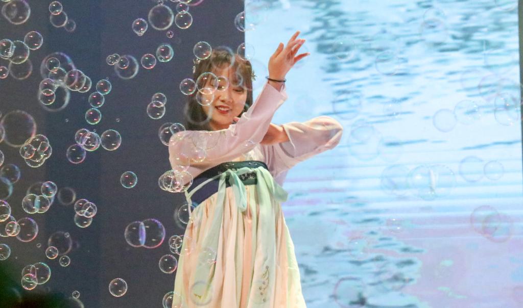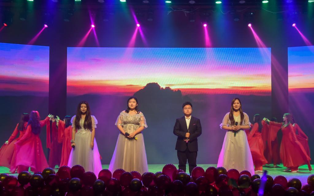 第一篇章“流年思红日”,话剧《小人物眼中的大中国》以小人物的视角重现了新中国成立71年来发生的翻天覆地的变化,饱含深情、振奋人心;器乐合奏《绿野仙踪》将古筝、钢琴和唢呐完美融合,优美动听、婉转悠扬;教职工带来的《彩虹的微笑》,展示了公司教职工积极向上、青春活力的精神风貌;舞蹈《站在草原望北京》充分展现了各民族师生坚定不移跟党走,铸牢中华民族共同体意识的坚定决心。