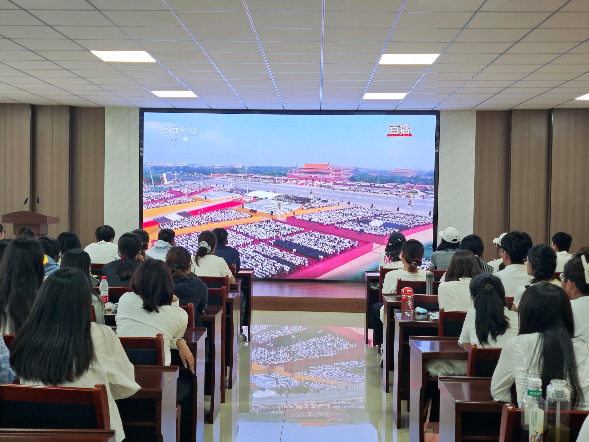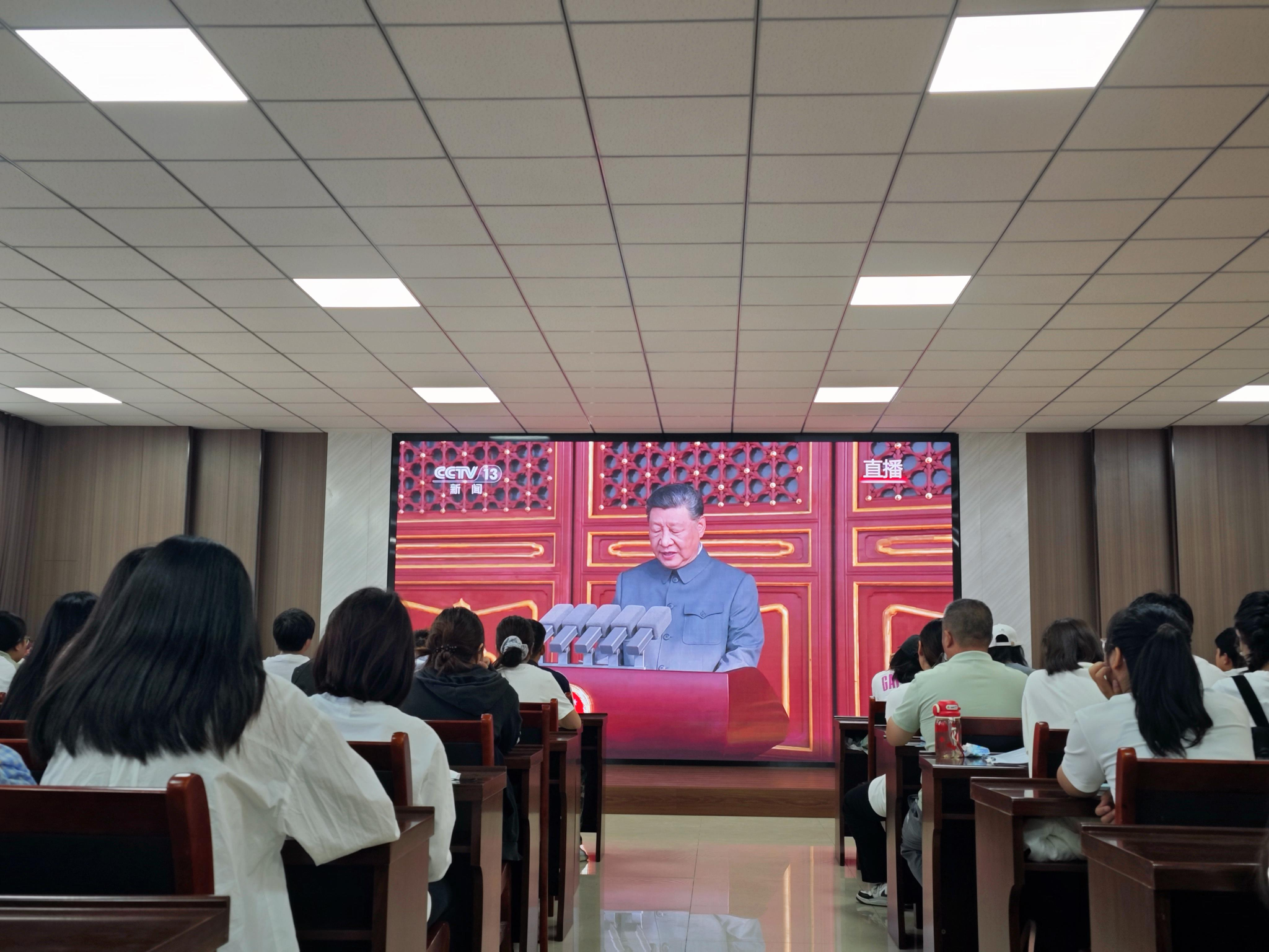 为了弘扬爱国主义精神,铭记波澜壮阔的历史,传承伟大的抗战精神,9月3日上午,公司组织2022级全体员工和部分教师在公司505会议室和502会议室,观看纪念中国人民抗日战争暨世界反法西斯战争胜利80周年阅兵仪式直播,共同见证这一庄严伟大的历史时刻。