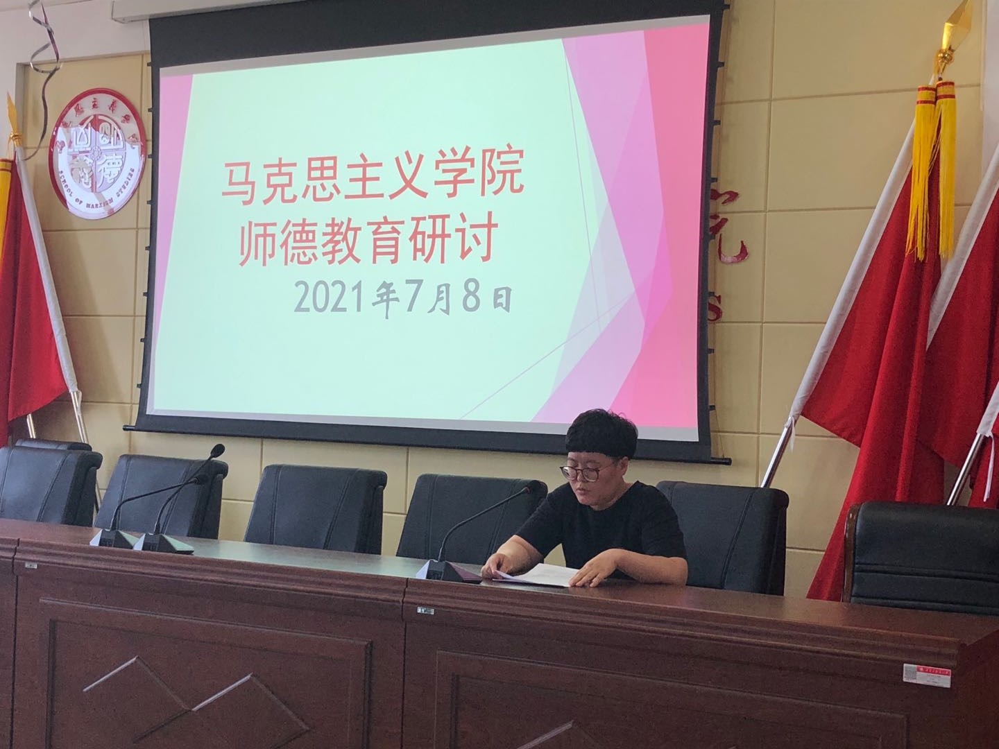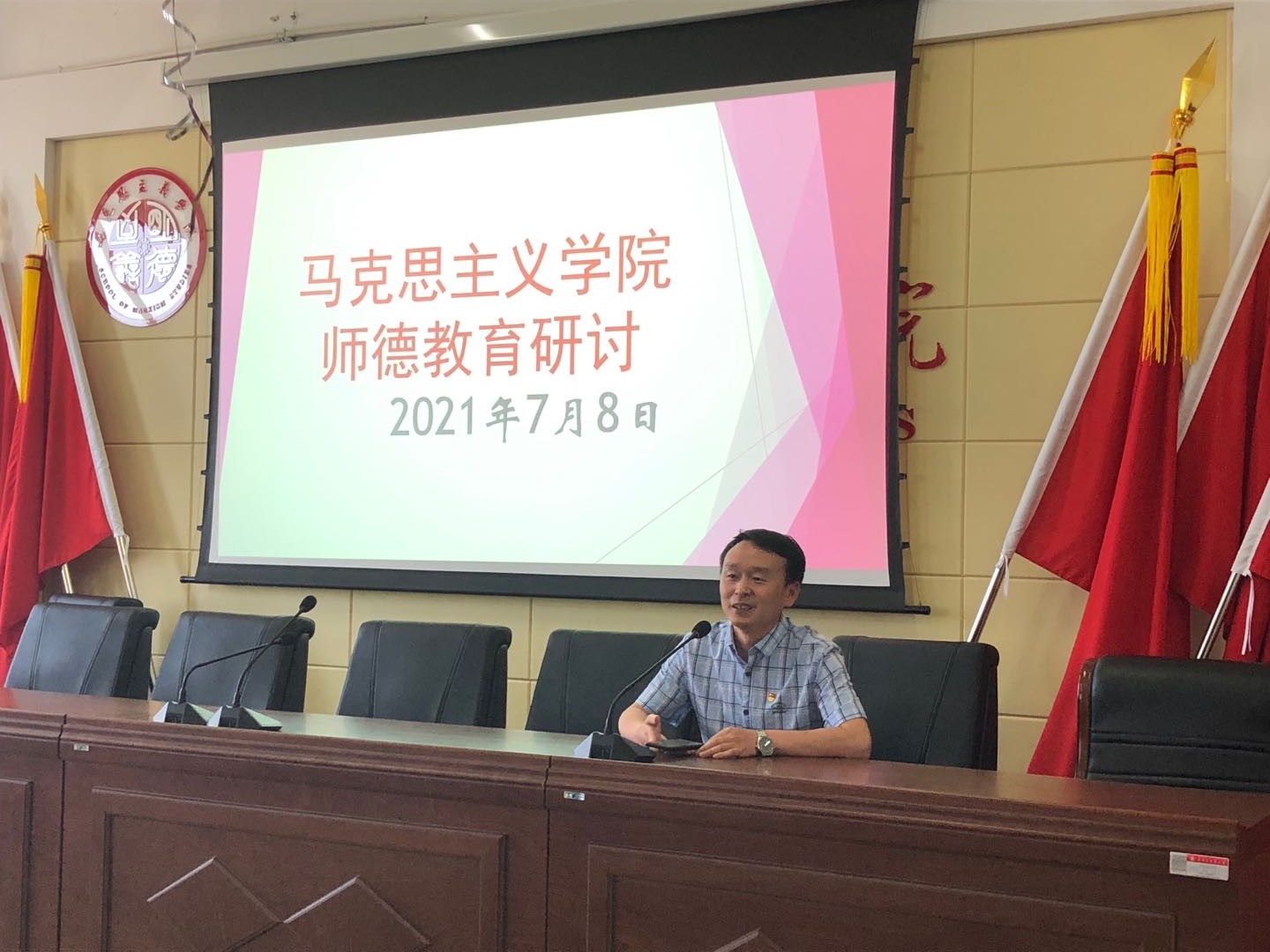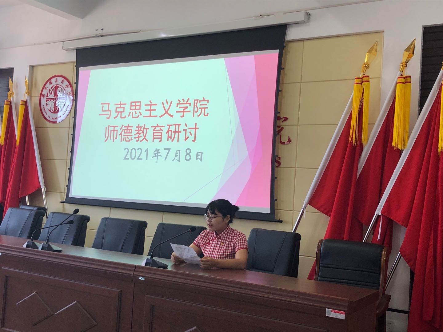 2021年7月8日下午,PA视讯官方网站在腾飞楼C509会议室召开师德教育研讨会,PA视讯官方网站全体教师参加会议,党总支书记马广辉主持会议。
