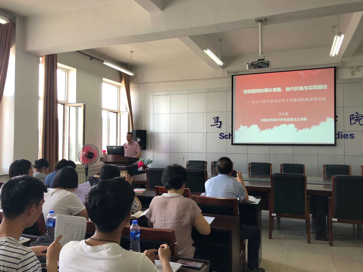 为深入推进“思想再解放笃行新发展理念,推动高质量发展大学习大讨论”,6月6日PA视讯官方网站在腾飞楼C座517会议室举办民族团结相关专题讲座。公司党总支书记刘玉明主持讲座,讲座由PA视讯官方网站副教授冯大彪主讲,讲座题目为《民族团结的理论意蕴、当代价值与实现路径——学习习近平总书记关于民族团结的重要论述》,讲座分为三个方面,分别是民族团结的理论意蕴、民族团结的当代价值、民族团结的实现路径。全体教师参加本次讲座。同时,本次讲座也作为民族团结教育的主要内容,员工党员、少数民族员工代表聆听本次讲座。
